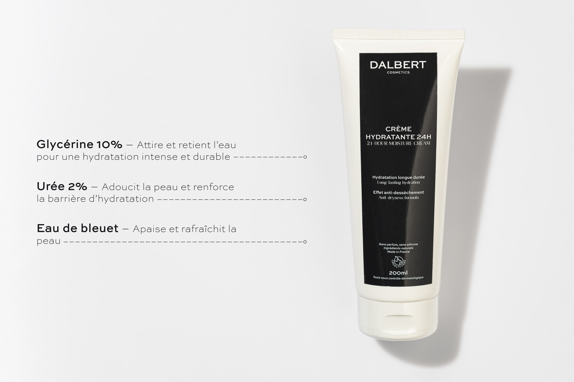 Crème Hydratante 24h : nourrit, adoucit et protège la peau tout au long de la journée.