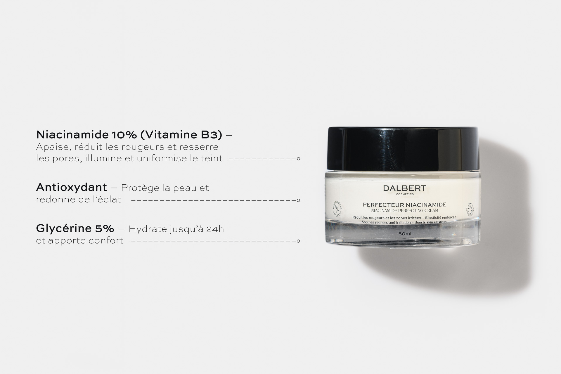 Perfecteur Niacinamide : unifie et apaise, pour une peau nette et lumineuse.